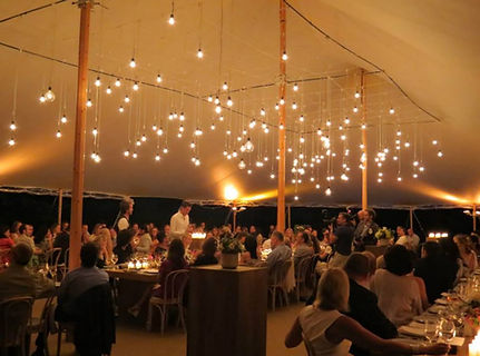 Lighting is one of the most overlooked aspects of tented events, but actually pretty crucial. Think of the difference between eating in a cafeteria under glaring white lights and dining in the soft glow of an upscale restaurant. The latter makes you look great and you want to stay and enjoy.